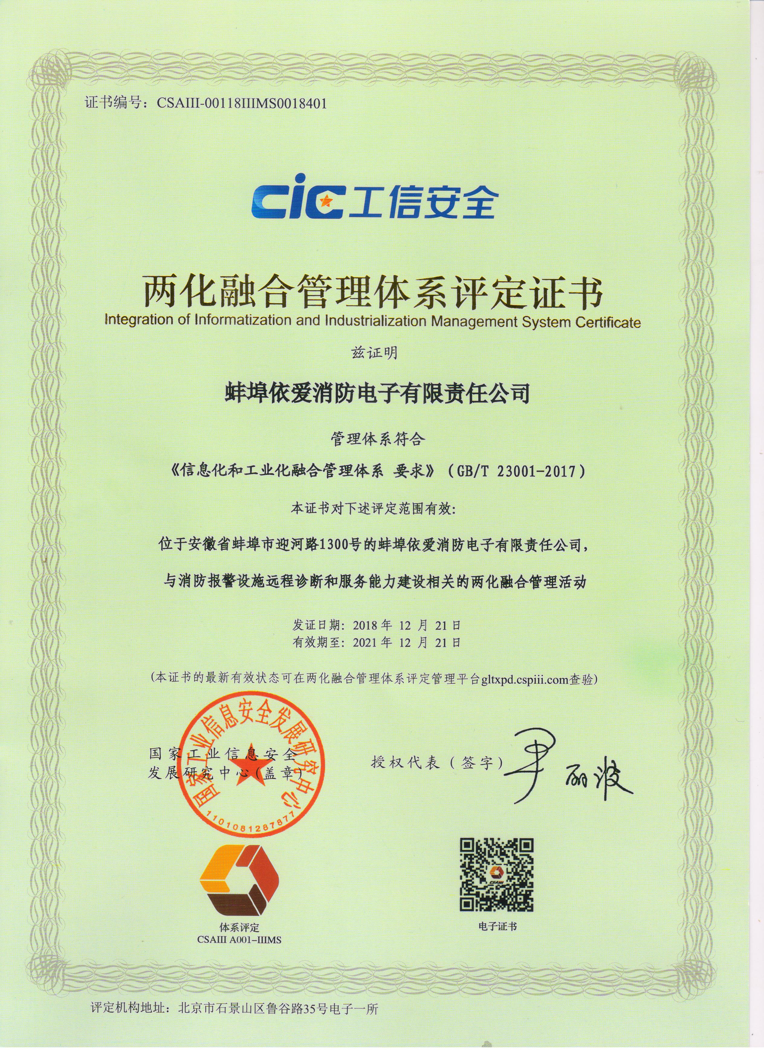 依愛消防兩化融合項(xiàng)目歷時(shí)一年,在公司管理層的指導(dǎo)及各業(yè)務(wù)部門的大力配合下,最終于2018年12月21日成功通過國家工信部審核并獲頒證書。